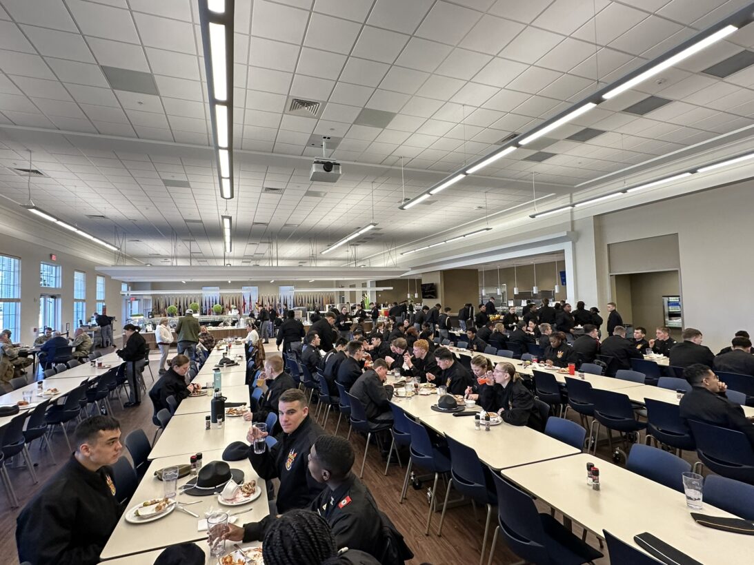 On January 2, returning cadet leadership ate dinner in our brand-new Dining Hall, with sophomore Phoebe McCarthy being the first to go through the service line. The entire Corps of Cadets had eagerly anticipated making the move to this modern environment for chow.